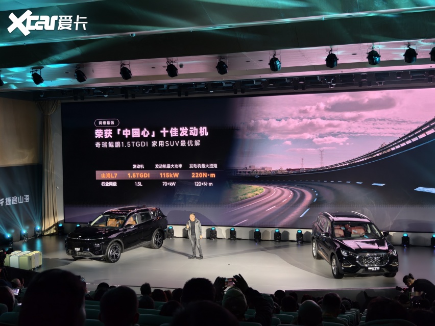 山海 L7 超越版则搭载奇瑞第五代 ACTECO 1.5TGDI 高效混动专用发动机 + 电机组成的插电混动系统,其中发动机上限功率 115kW,峰值扭矩 220N・m,电机上限功率 199kW,最大扭矩 395N・m,系统综合功率达 314kW,实现 7 秒级零百加速,动力表现媲美更高级别车型。该车 CLTC 纯电续航能力 130km,综合续航可达 1300km,百公里馈电油耗仅 5.18L,城市短途出行可纯电行驶,每公里成本低至几分钱,长途旅行无需担心续航焦虑,真正的完成 “城市用电省,长途用油省”。此外,该车配备 6.6kW 外放电功能,可直接为电烤炉、投影仪等露营设备供电,搭配车载 5L 智能冷暖冰箱(-6~50°C 可调,6 种工作模式),让户外露营实现 “用电自由” 与 “保鲜自由”。